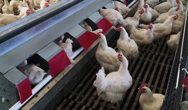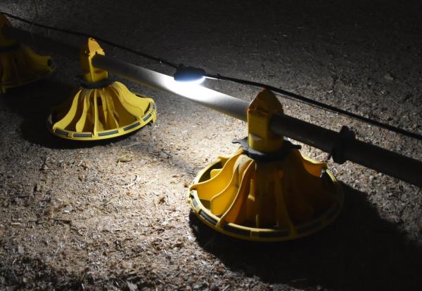 The Optient lighting system from ONCE by Signify is installed above the feed line to attract broilers of all ages in accordance with natural behavior. Field trials show an improvement in feed conversion of up to four points at the time of harvest. Energy consumption is reduced by up to 70 percent compared to conventional LED ceiling lights. Some growers use only the Optient installation after the end of the brooding period.