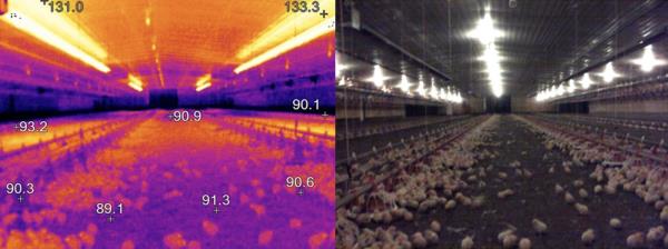 The 20 ft. long radiant tube heaters are endorsed by agricultural engineers affiliated with the UGA Extension Poultry Science Service based on their field evaluation based on even distribution of heat promoting regular distribution of chicks. Temperature variations at litter level are less than 10F in houses. Thermal imaging during brooding provided data supporting the litter-level temperatures located adjacent to outside feeder lines and inside drinker lines.