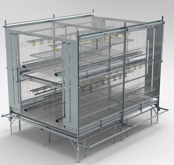 The Valli Baby Area system will be displayed on the VAL-CO booth. The rearing aviary incorporates design features to facilitate management of replacement flocks. Chicks can be monitored after placement in a single tier. The front grills can be adjusted continuously from closure to complete opening to allow flocks to access litter. The external perches are adjustable in height to conform to the growth of the flock. The Valli Baby Area rearing system offers optimal use of floor space with appropriate positioning of the chain feeder and nipple drinker lines.