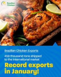 Total exports of bone-in broiler parts and feet during January 2026 attained 244,547 metric tons, 2.0 percent higher than in January 2025 (239,680 metric tons). Total value of broiler exports decreased by 5.1 percent to $349.9 million ($368.0 million).