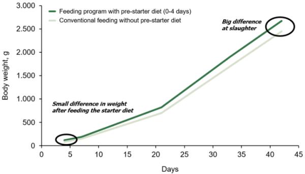 To determine the potential benefit of adding HP AviStart to a broiler pre-starter or starter diet, realistic assumptions were included in the following projection: